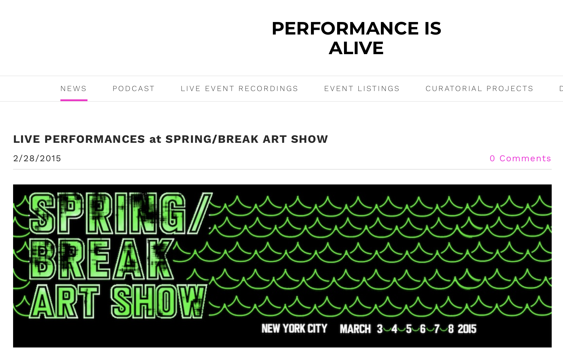 Live performances at Spring/Break Art Show, March 2015