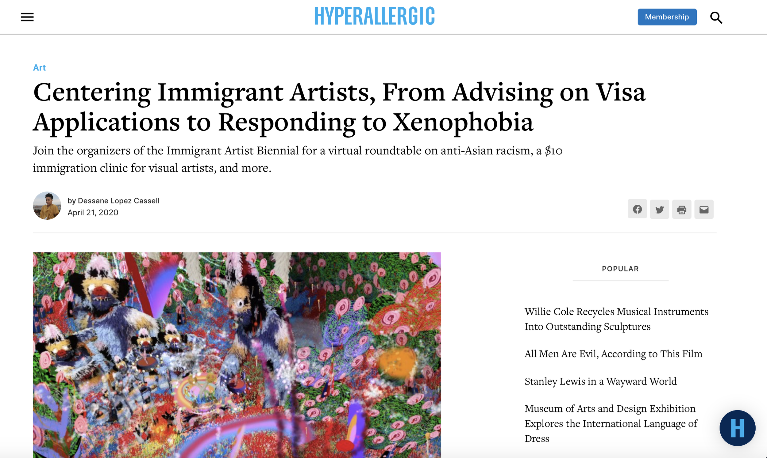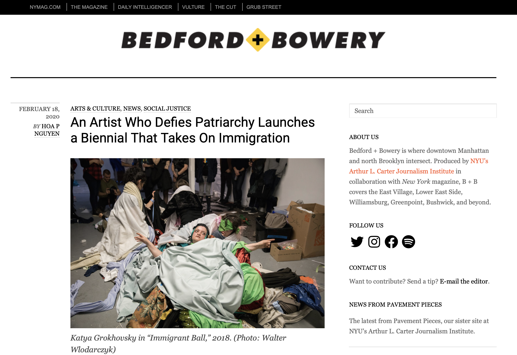 The Immigrant Artist Biennial Offers a Lesson in Perseverance, October 2020.