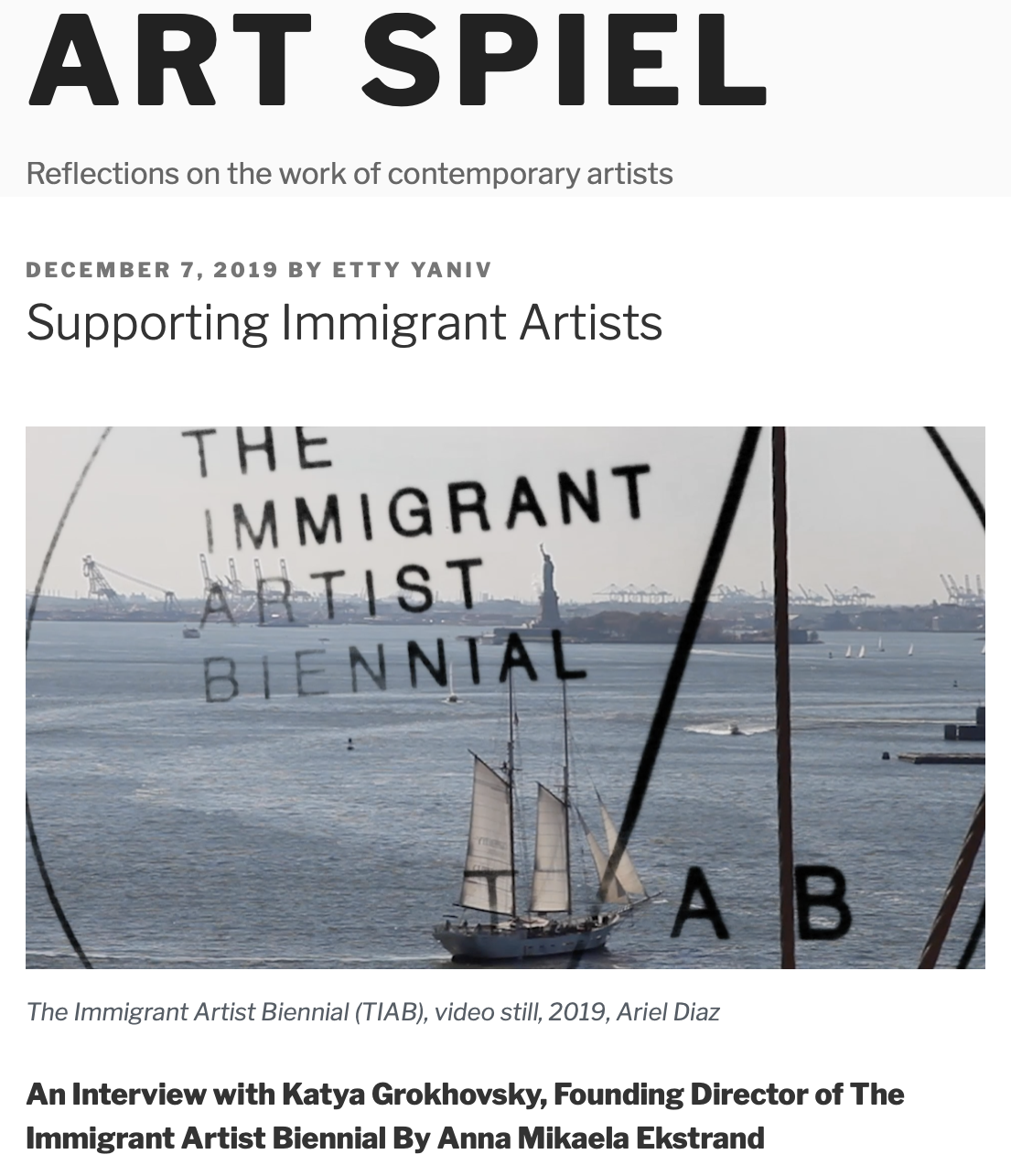 The Immigrant Artist Biennial, Interview with Katya Grokhovsky, December 2019