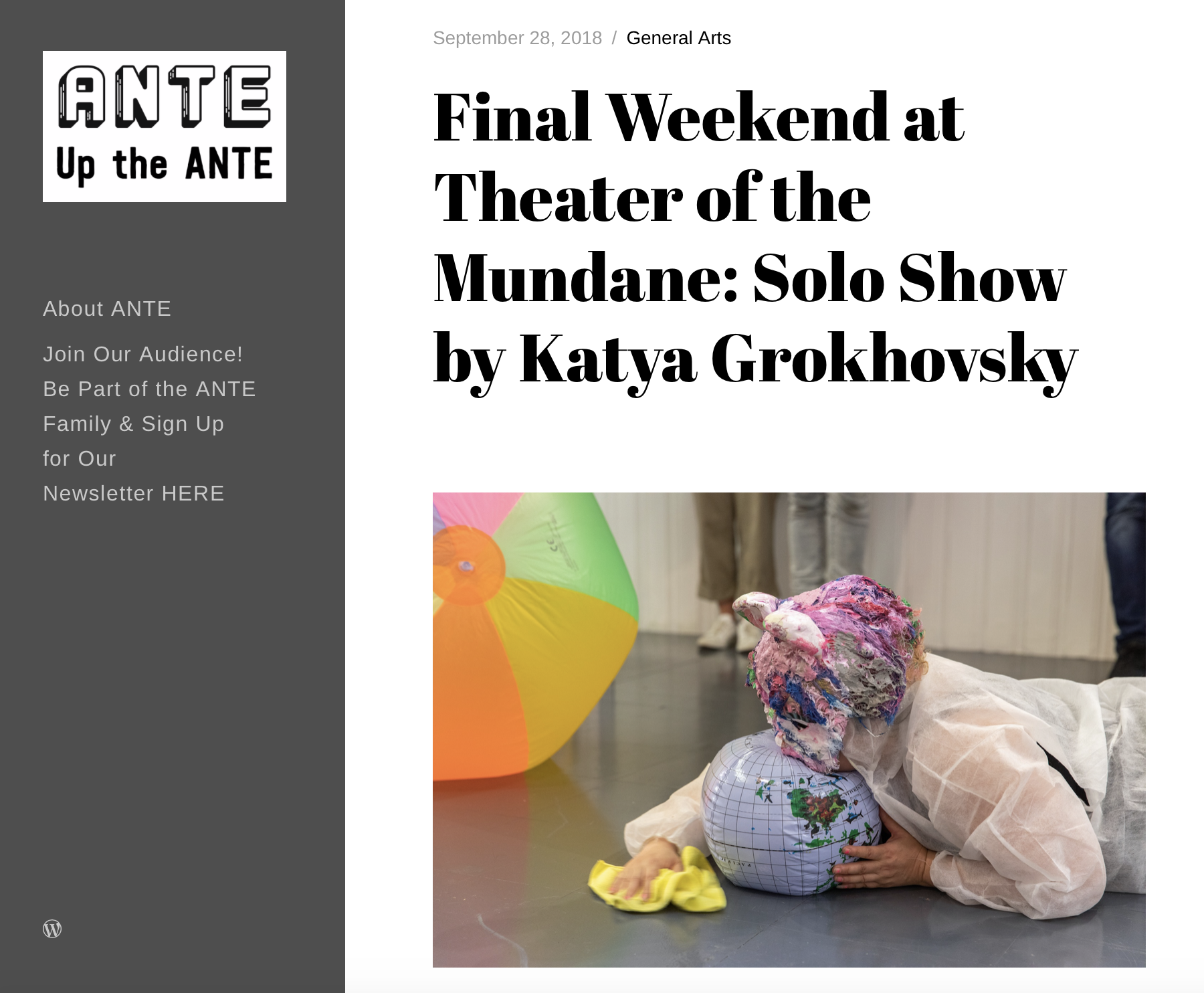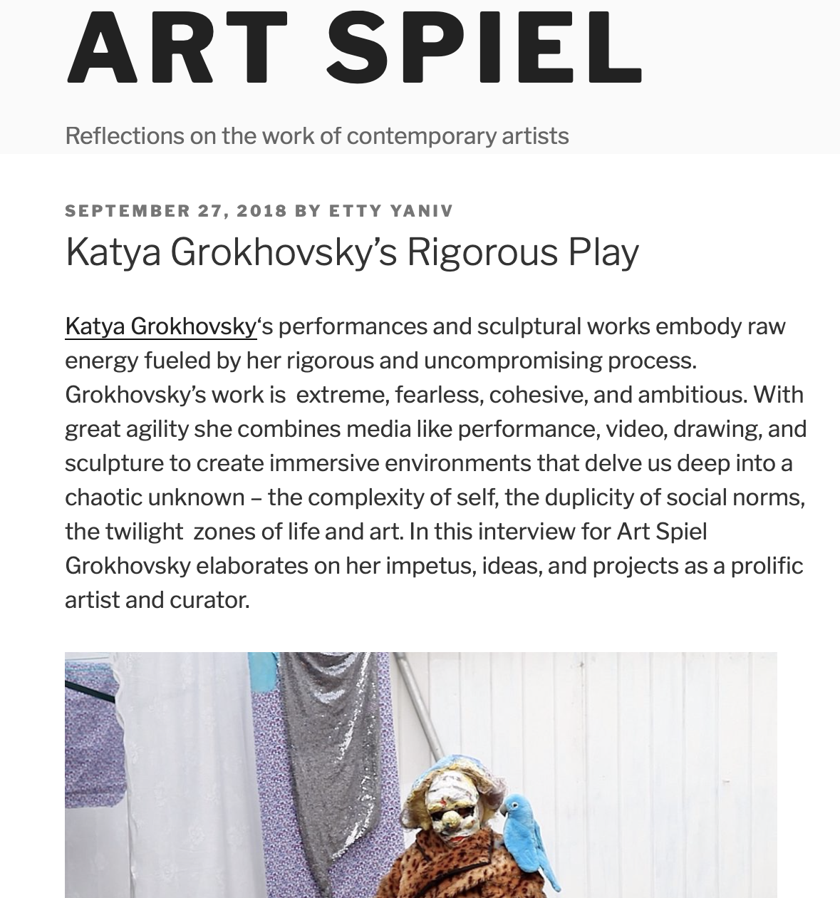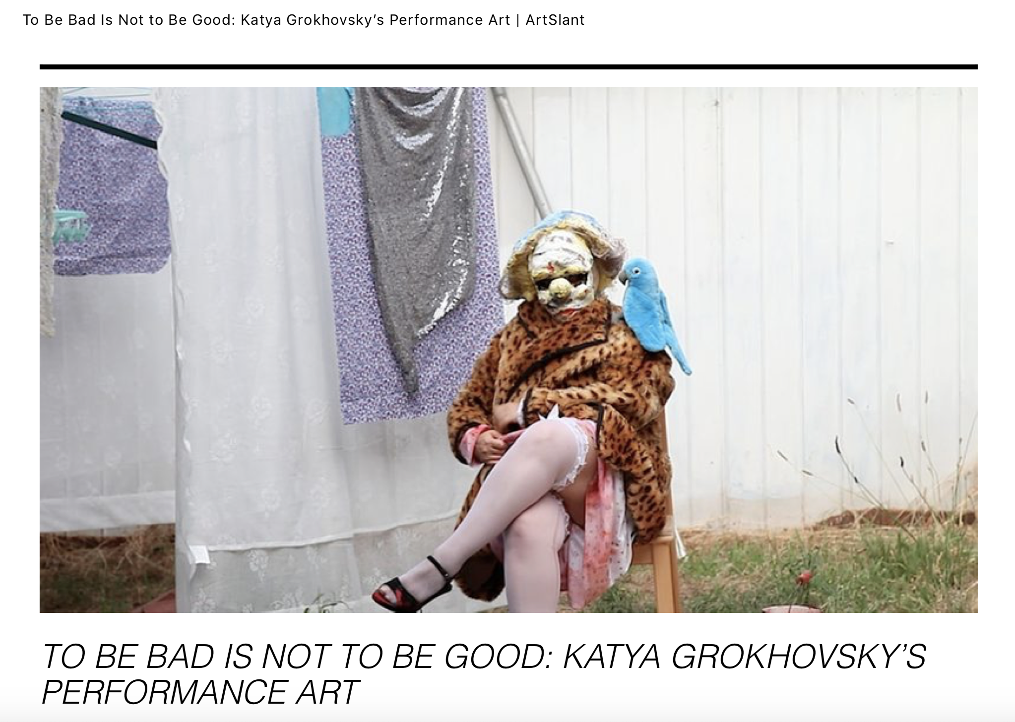 Essay, To be Bad is not to be Good, Katya Grokhovsky’s Performance Art, March 2018
