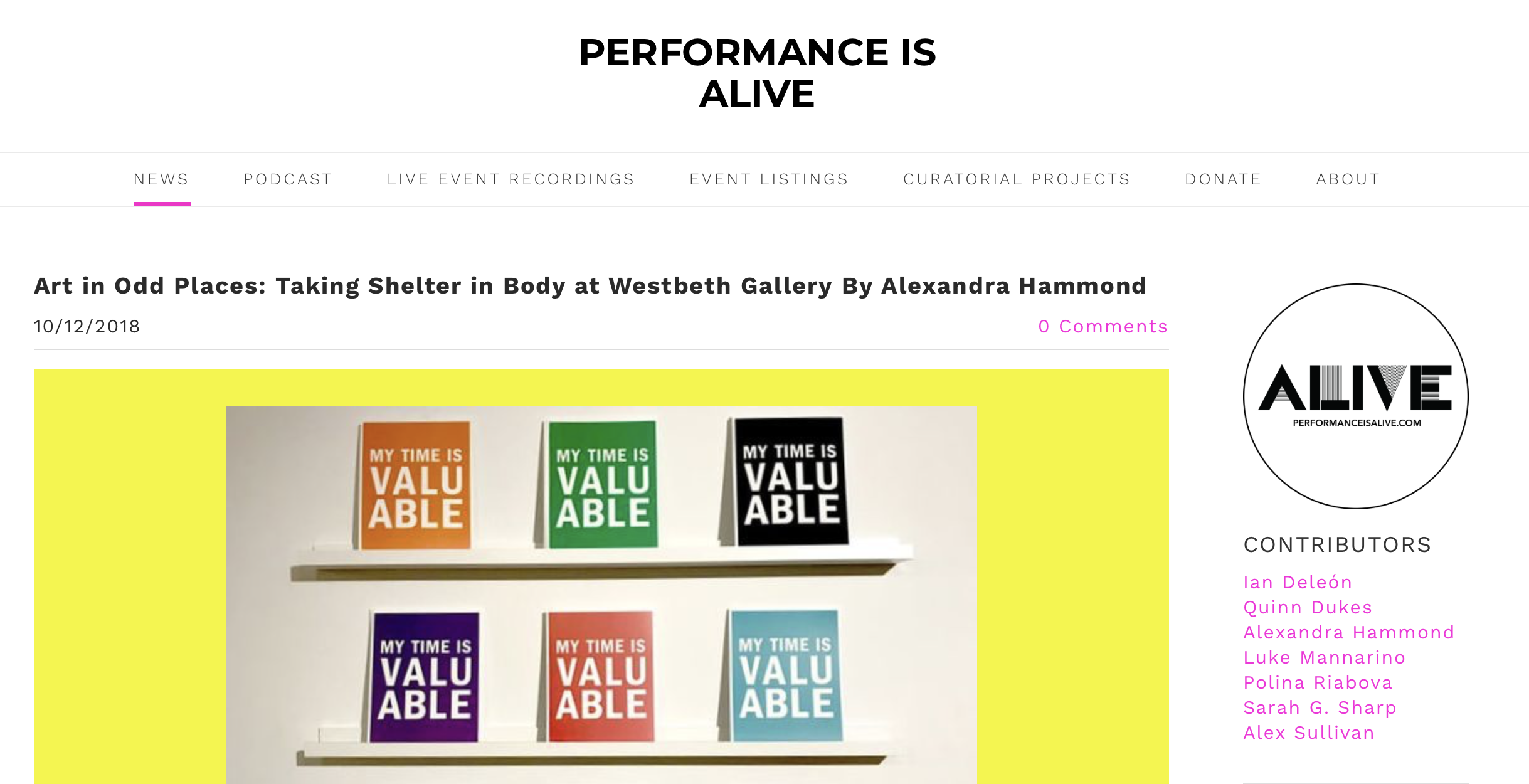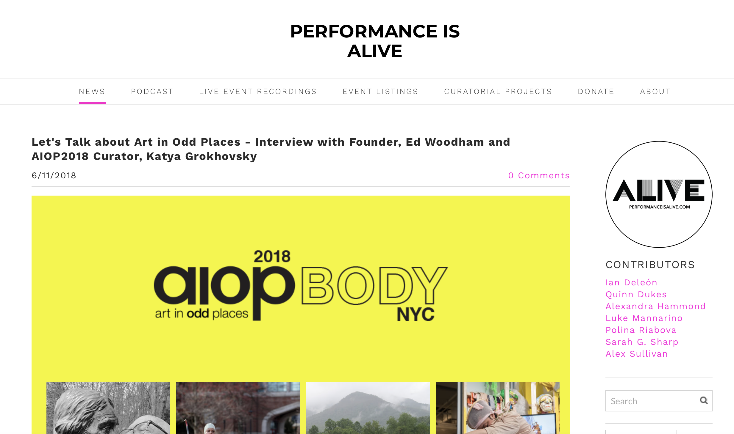 Interview, Art in Odd Places, June 2018